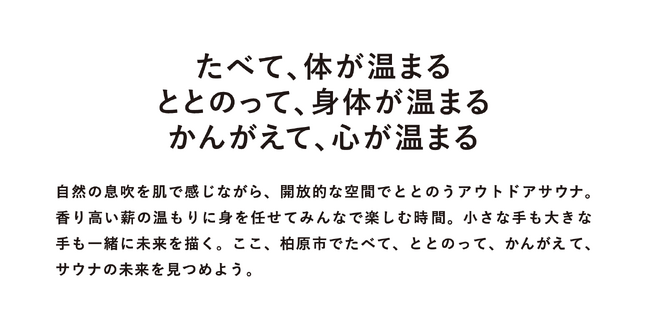 近年、盛り上がりを見せるサウナの中でも屋外で楽しむアウトドアサウナを体感しながら、おいしい食べ物を食べられます。より多くの方々に楽しんでいただけるようイベントの入場は無料!子どもが遊べる縁日エリアを設置し、ご家族での参加でも一日楽しんでいただける。そういったコンセプトのイベントです。