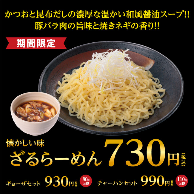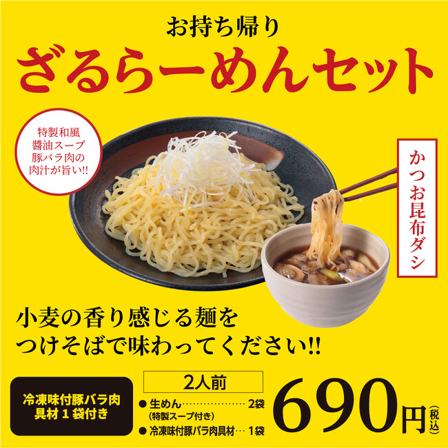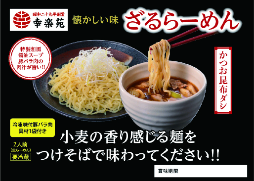 株式会社幸楽苑ホールディングス(本社:福島県郡山市、代表取締役会長兼社長:新井田 傳、以下「幸楽苑」)は、2023年11月29日(水)から、期間限定で「ざるらーめん」730円(税込)を販売いたします。本商品は、ご家庭でも簡単に調理できるお持ち帰り専用の「ざるらーめんセット」(2食入り)690円(税込)もご用意いたしました。