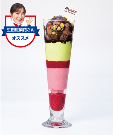 生田絵梨花さんのオススメは「アデカのジミスゴパフェ」※。動物性のミルクやクリーム、チーズの代わりにADEKAの「デリプランツ」を使用した、プラントベースフード・デザートです。