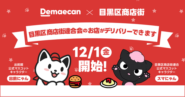 株式会社出前館(本社:東京都渋谷区、代表取締役社長:藤井英雄)が運営する日本最大級のデリバリーサービス『出前館』は、「目黒区商店街連合会」と連携し、2023年12月1日(金)~2024年1月31日(水)に、デリバリーの利用促進の取り組みを実施いたします。 期間中、目黒区商店街連合会に所属する出前館へ加盟店舗を対象に、対象店舗においては手数料無料にて『出前館』をご利用いただけ、ユーザーのみなさまへは対象店舗でのご注文が送料無料となるキャンペーンを開催いたします。