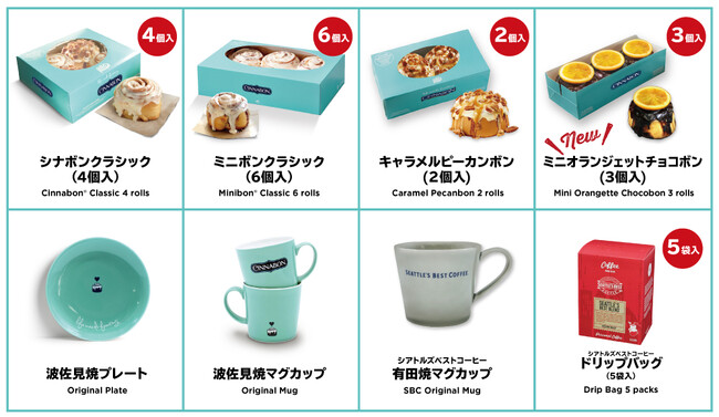 また、「シナボン」と相性が抜群の「シアトルズベストコーヒー」のドリップバッグコーヒーや、シナボングッズも豊富に取り揃えております。