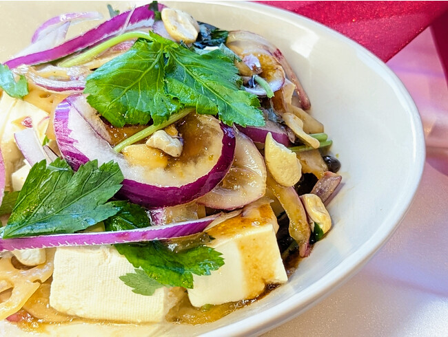 ▲「れんこんとカシューナッツの柚子胡椒和え豆富」