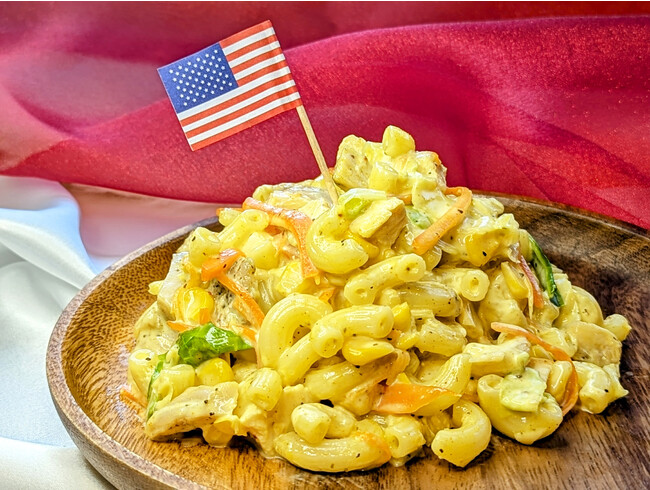 冬は、土の下でじっくり育った根菜類が旬を迎え、甘みが増します。「和柑橘香る人参とケールのサラダ」は、旬の人参を千切りにし、昨今スーパーフードとして話題のケールと合わせました。柚子やみかんの和柑橘のフルーティーな甘さ、クランベリーの爽やかな甘酸っぱさが、野菜の味を引き立てます。冬になると食べたくなるバーニャカウダをイメージし、甘みが増した大根やブロッコリー、パプリカなどの野菜がたっぷり入った「バーニャカウダパスタ~濃厚なソースと野菜の調和~」は、ガーリックの風味が良く濃厚でクリーミーなソースを絡めたパスタサラダです。 他にも、蓮根の食感が楽しく、カシューナッツの甘みが豆富とマッチする「れんこんとカシューナッツの柚子胡椒和え豆富」。アメリカでインスピレーションを受け、ブロンコビリー風に再現した「カレーチキンマカロニサラダ」や、大人な隠し味がポイントの「香り豊かなシャインマスカットゼリー」の計5品をご用意いたしました。