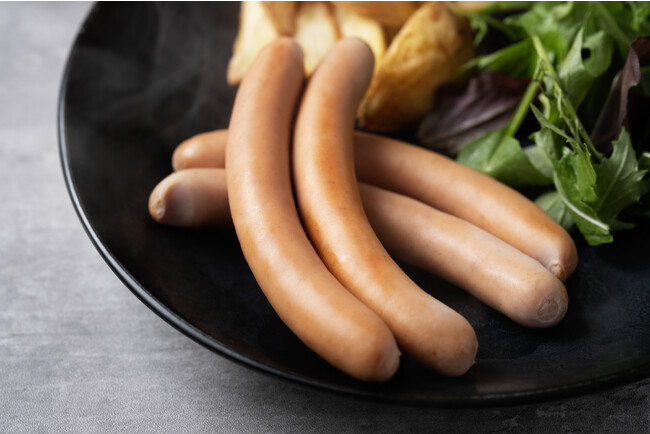 原材料:豚肉、牛肉、食塩、香辛料、粒マスタード/リン酸塩(Na、K)、酸化防止剤(ビタミンC)、調味料(アミノ酸)、発色剤(亜硝酸Na)