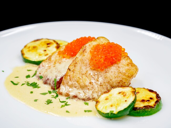 クリーミーでほんのり酸味のある白ワインソースと濃厚なフレンチキャビアが、