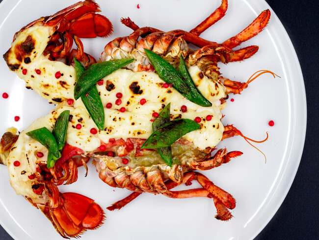 ロブスターを丸ごと一尾使用し、濃厚なクリームソースを乗せてこんがりと焼き上げました。