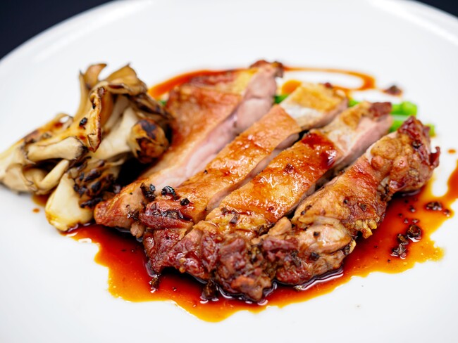 岩手県産の合鴨もも肉を柔らかく焼き上げ、トリュフの香り豊かなペリグーソースで仕上げました。