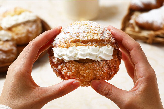 このたび、12月1日(金)より旬の食材”りんご”を使用した『ごろっとりんごのクイニーアマンリング』、冬を連想させる”キャラメル”を使用した『キャラメルクロワッサン』、『生キャラメルクリームサンド』の全3種で”冬のごちそう”をテーマとした商品を新発売いたします。