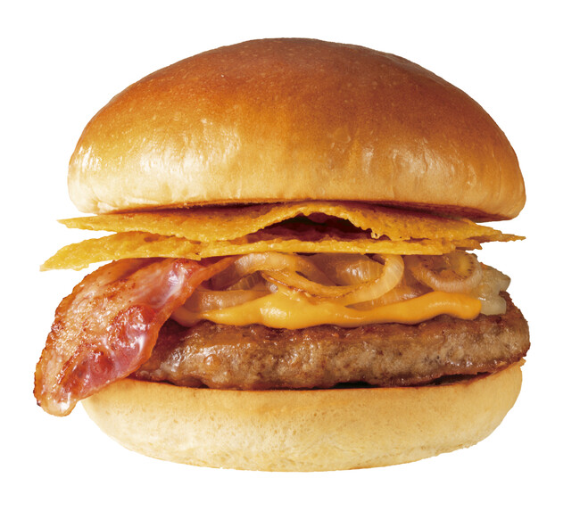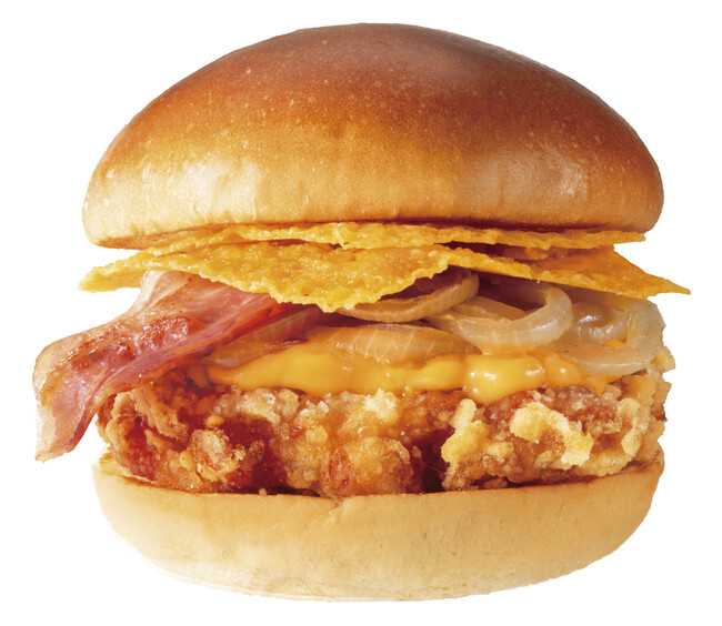 一枚ずつていねいに焼き上げたチェダーチーズを2枚挟み、バリバリとした食感と濃厚なレッドチェダーチーズの味わいがまさにバリうま!ファーストキッチンの出汁を効かせたサクサクとした衣のチキン竜田と醤油を加えたバンズに、グリルオニオンの甘みやベーコンのスモーキーさがマッチした、旨味あふれる冬限定バーガーです。