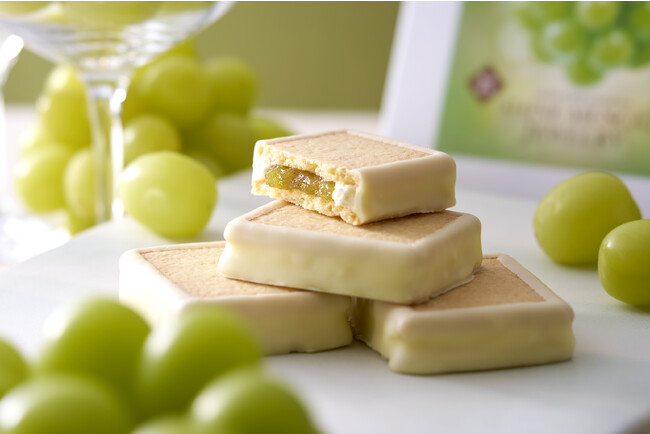 シャインマスカットのジャムとバタークリームを薄焼きクッキーでサンドし、