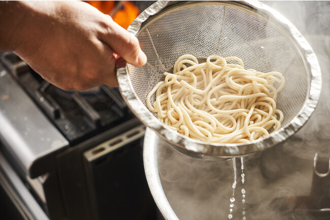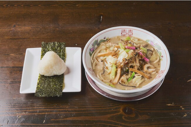 濃厚な“元祖ベタ系”豚骨ラーメンの人気店「初代 秀ちゃん」と99麺のコラボレーションが実現し開発された期間限定メニュー「ふさこのちゃんぽん」は、秀ちゃんラーメン店主の母の味を再現したちゃんぽんで、豚骨ベースのスープに、あきたこまち全粒粉玄米麺99麺がよく絡み、癖になる濃厚な味わいが特徴です。