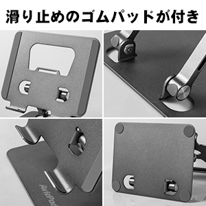 【安定性抜群&滑り止め保護ゴム付】AvidPad 2023年最新型のタブレットスタンドは、圧倒的な安定性を誇るアルミニウム製の重厚感あるスタンドで商品には、滑り止めの保護ゴムが付いています。滑りにくく安定した状態で利用でき、安全性を確保します。