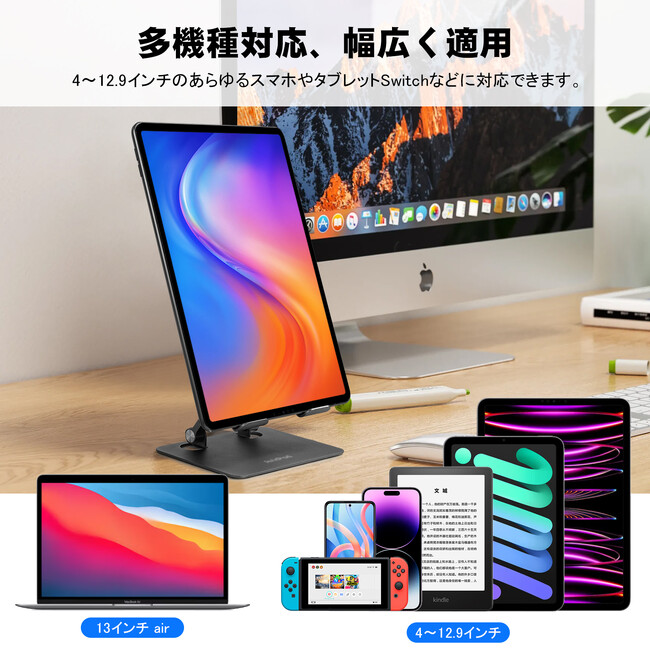 【幅広い対応4インチから12.9インチまで】 AvidPadタブレットスタンドは幅広いタブレットサイズに対応しており、約4-12.9インチのデバイス(iPad Pro 12.9 / 7.9 / 9.7 / 10.2 / 10.5 / 10.9 / 11 / mini 2 3 4 / air 1 2 3 4, S9 S8 S7 S6, AvidPadタブレットにも)多様な端末に対応し。キッチン ・ オフィスデスク ・ ナイトテーブル ・など幅広い用途でご利用いただけます。