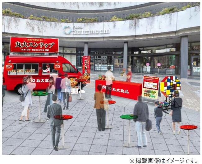 「~スンドゥブを食べて温まろう~丸大スンドゥブキッチンカー」は、これから迎える冬の寒さを温かいスンドゥブを食べて乗り切っていただきたいという想いから、2日間で合計1,500杯のスンドゥブを無料提供する試食イベントです。丸大スンドゥブの商品カラーである赤と緑を基調とした、スンドゥブ体験エリアが東京スカイツリータウン(R)のソラマチひろばに出現。ソラマチひろばのイベント会場には、高さ約1.7メートルのスンドゥブバルーンが登場し、東京スカイツリー(R)を背景にスンドゥブバルーンと一緒に撮影ができます。