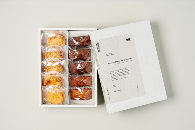 「Patisserie Minimal 祖師ヶ谷大蔵」のチョコレートフィナンシェとフィナンシェ、ガレット・ブルトンヌとガトーバスク・ショコラなど、4種を一度にお楽しみいただける限定セットです。