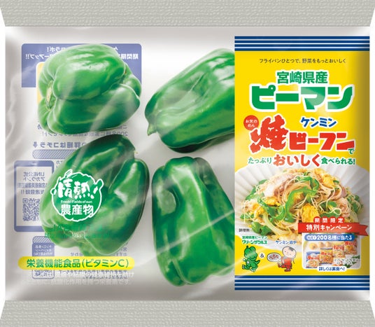 ケンミン食品株式会社(兵庫県神戸市・代表取締役社長:高村祐輝)は2024年1月1日から1か月間、宮崎県産ピーマン「グリーンザウルス」と「ケンミン焼ビーフン」とのコラボキャンペーンを全国で実施します。