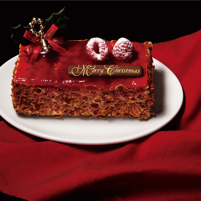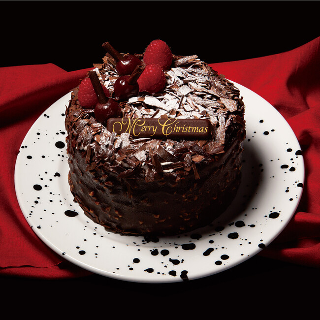 しっとりとしたチョコレート生地となめらかな口溶けの2種のクリーム、チェリーの酸味、ナッツの食感がアクセントに効いたキルシュ薫る大人仕立てのクリスマスケーキです。