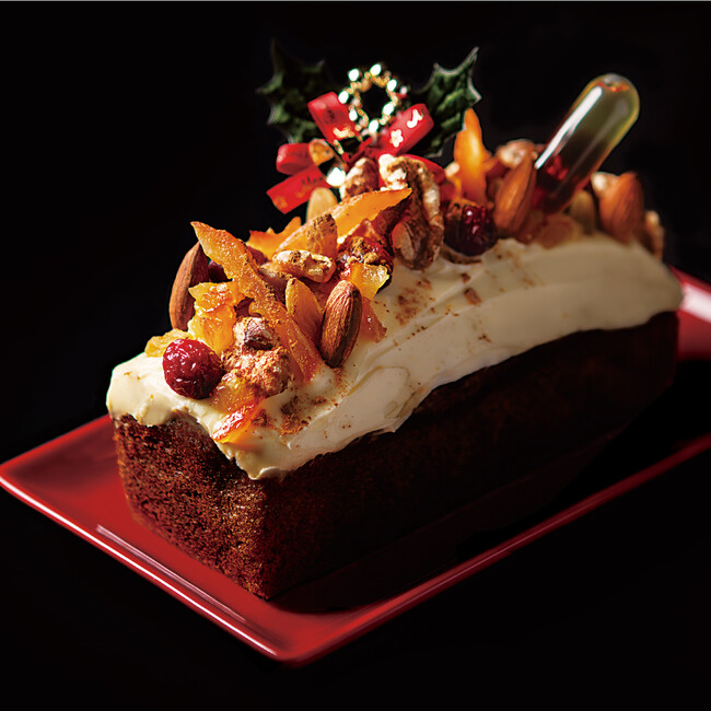 THE CITY BAKERY の定番人気商品「キャロットケーキ」がクリスマス仕様に!ドライフルーツやナッツ、スパイス入りの生地とクリームチーズが好相性。オリーブオイル&メープルシロップをお好みでかけてどうぞ。