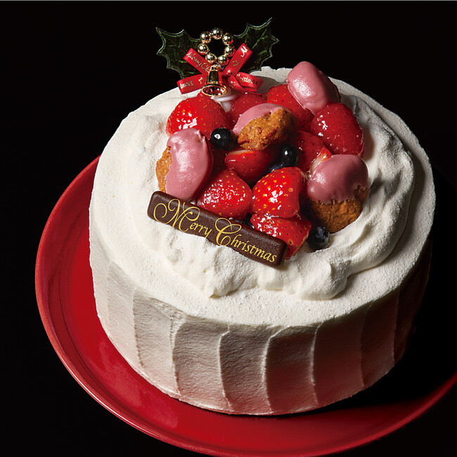 ふわっふわのスポンジと生クリームのバランスにこだわり抜いた王道のショートケーキがご予約限定で登場!ストロベリー、ラズベリー、ブルーベリーの3種のベリーとハート型クッキーがクリスマスの食卓を華やかに彩ります。