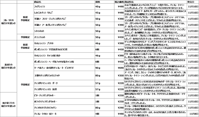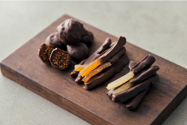 「フィグショコラ」「しみこみチョコ りんご」「不揃い フロマージュチョコがけいちご」「不揃い アールグレイチョコがけいちご」「シトロネット」の5種を新たに発売します。いちじくやりんご、いちごなどフルーツの酸味がチョコレートの濃厚さを引き立たせています。