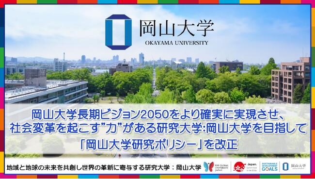 国立大学法人岡山大学(本部:岡山市北区、学長:那須保友)は、2023年10月30日の役員会(10月18日教育研究評議会承認)において、「岡山大学研究ポリシー」を改正しました。
