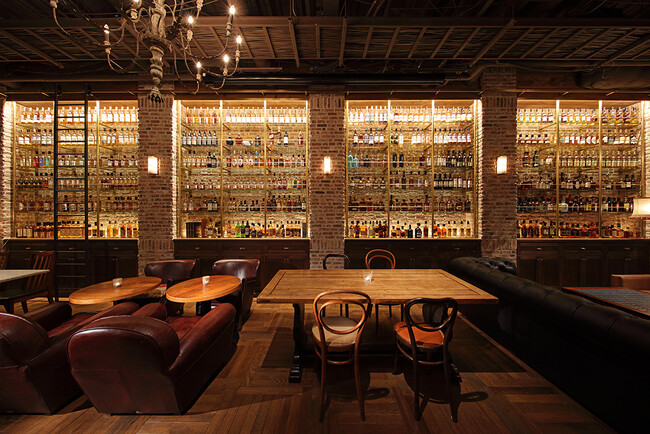 圧巻のWhiskyのコレクションが並ぶ大人のためのバー&ラウンジ。4メートル以上ある天高にずらりとライブラリーのようにウィスキーが敷き詰められた幻想的な空間が広がります。スコッチ、バーボン、ジャパニーズ、アイリッシュ、オールドボトルなど、1300種類以上のウイスキーをご用意。国別、地域別、ヴィンテージ違いなど、テーマごとの“テイスティングフライト”も用意しています。デート、女子会、会食利用などあらゆるシーンでご利用いただけます。