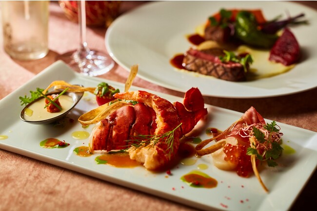 鮑、キャビア、雲丹、オマール海老、鮟鱇、フィレ肉をご堪能いただける全5品目のコース
