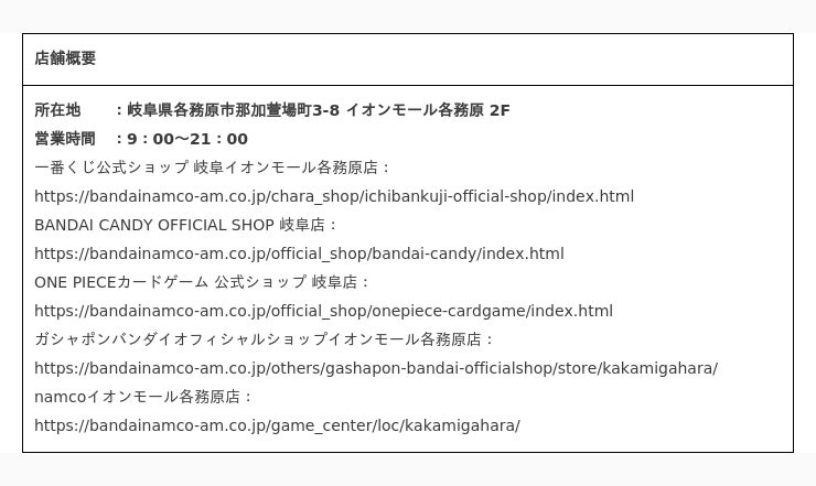 ■一番くじ公式ショップ 岐阜イオンモール各務原店