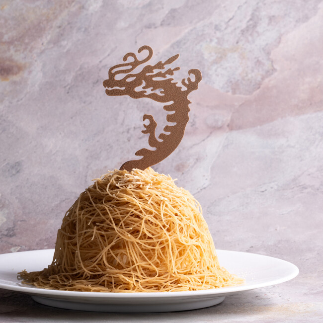 2024年の干支「辰」をかたどったショコラをのせたしぼりたてモンブラン