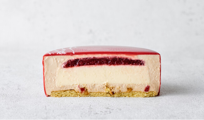 ルビーチョコレートのムースに、苺のコンフィチュールとフロマージュのムースをしのばせました。まろやかなコクと爽やかな酸味が絶妙です。ルビー色のケーキに、チョコレートプレートとクリスマスピックがついていて、華やかにクリスマスを演出してくれます。