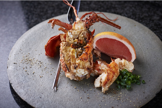 生簀から上げた伊勢海老はシンプルに香ばしく焼き上げます