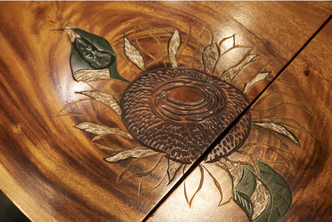 向日葵の彫刻を入れたテーブルや手づくりの椅子など、お客様の触れるものには徹底的にこだわり、居心地の良さを追求しました。