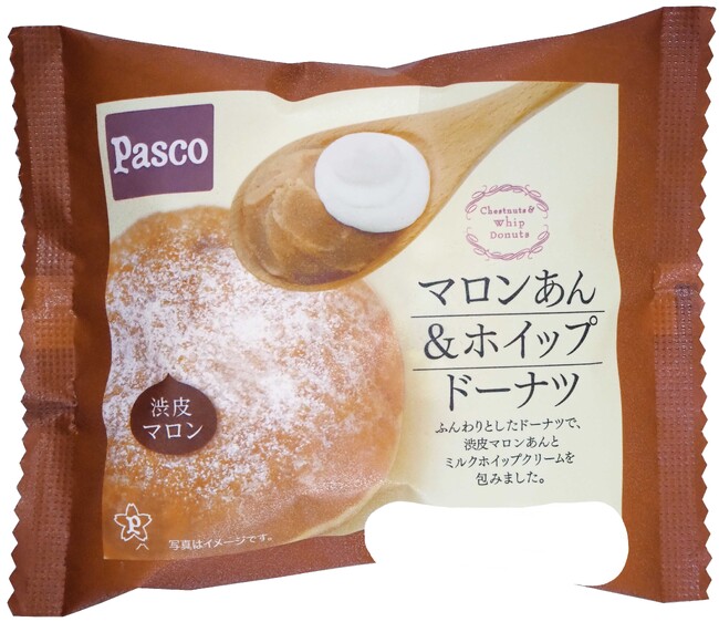 ふんわりとした食感のドーナツで渋皮マロンあんを包み、ミルクホイップクリームを入れ、粉糖をかけて仕上げました。