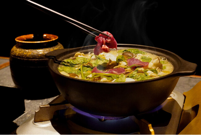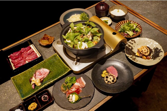『かまど焼 NIKUYOROZU』にて、「お肉ソムリエ厳選ジビエづくし牡丹鍋コース」を冬季限定で提供中です。獣害が問題視される昨今、獣害対策で捕獲した野生の鹿や猪を食肉用のジビエとして活用する動きが広がるなど、再びジビエ料理への注目が高まりつつあります。ジビエは山の厳しい生育環境で育つことから栄養価が高く、高タンパクで低脂質なため、美容と健康の観点において優秀な肉であると言えます。ジビエは狩猟が解禁となる11~2月が美味しいシーズン。そんな注目度が高く旬の食材であるジビエを、『かまど焼 NIKUYOROZU』ではお肉のプロである「お肉ソムリエ」が考案した全8品からなるジビエコースにてお楽しみいただけます。