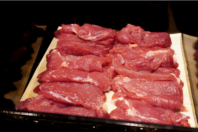 『かまど焼 NIKUYOROZU』では、愛媛県産の「みかん猪」を仕入れています。「みかん猪」とは、愛媛の名産品であるみかんを食べて育った野生の猪のことをさします。愛媛みかんのハイシーズンには、肉や脂からほんのりみかんの香りがすることもあります。猪も鹿と同じく高タンパクで鉄分が豊富。脂質は豚肉と変わりませんが、鉄分は豚肉のおよそ4倍、ビタミンB12は3倍含んでいます。山で育つ新鮮な野菜を食べ過酷な環境で育った猪の脂は上質で、健康に配慮しながらジューシーで贅沢な肉質を楽しめます。「お肉ソムリエ厳選ジビエづくし牡丹鍋コース」では、「みかん猪」のロースや肩ロースをお楽しみいただけます。