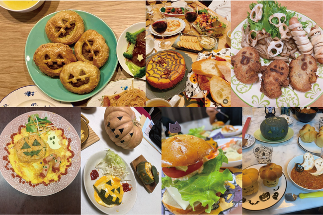 アンケートでは、回答者に食卓や料理の写真を送っていただきました。アンケートで送っていただいた食卓・料理の写真からは、昨今の厳しいお財布事情の中でも、見た目にこだわったり、普段と違うメニューにチャレンジしたり、品数を増やしたり、各家庭で創意工夫を凝らしてハロウィンパーティーを楽しんでいる様子が感じられます。