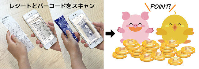 買い物のレシートと購入商品のバーコードをスキャンすることで、各種提携ポイントに交換可能なポイントがもらえるスマートフォンアプリです。(ポイントは提携サービス経由で現金にかえることも可能)