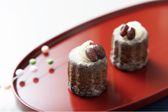 カヌレの一番上には、国産の大納言納豆に加えて金粉もあしらわれ、新年にふさわしい華やかな逸品です。