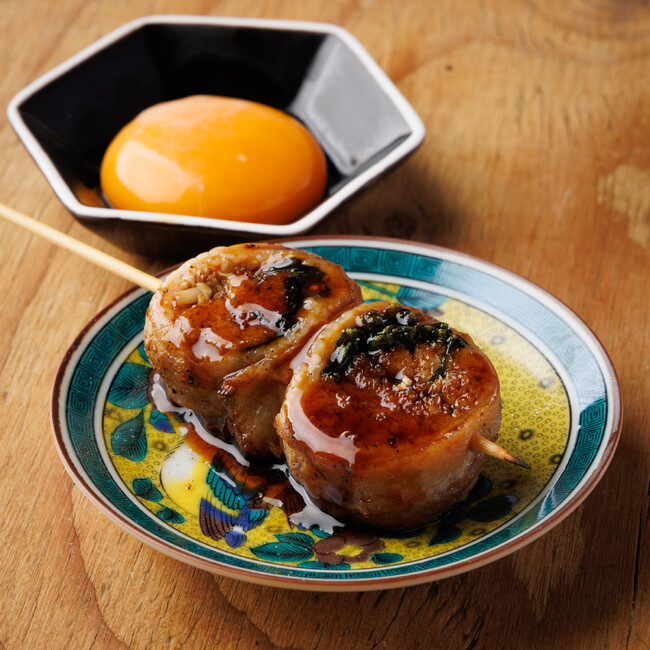 綺麗な色合いが魅力のすき焼き串は、食べ応えも抜群!すき焼きのタレと卵黄を混ぜて、串焼きをくぐらせれば、絶品すき焼きの味を一口で楽しめます。