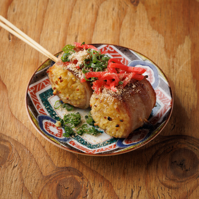 博多といえば「豚骨ラーメン」ですが、どげんねではその豚骨ラーメンをなんと串でご用意!紅しょうがと一緒に食べれば、ひと口で博多旅行に行けちゃいます。