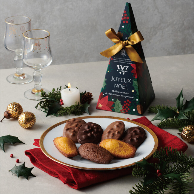 ヴィタメール人気の焼き菓子「マカダミア・ショコラ」と「ロイヤル・マドレーヌ」をツリー型のパッケージに詰め合わせました。
