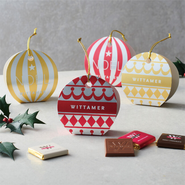 ベルギー産チョコレートの美味しさをシンプルに味わえる「カレ・ド・ヴィタメール」をキラキラのオーナメント型パッケージに詰め合わせました。