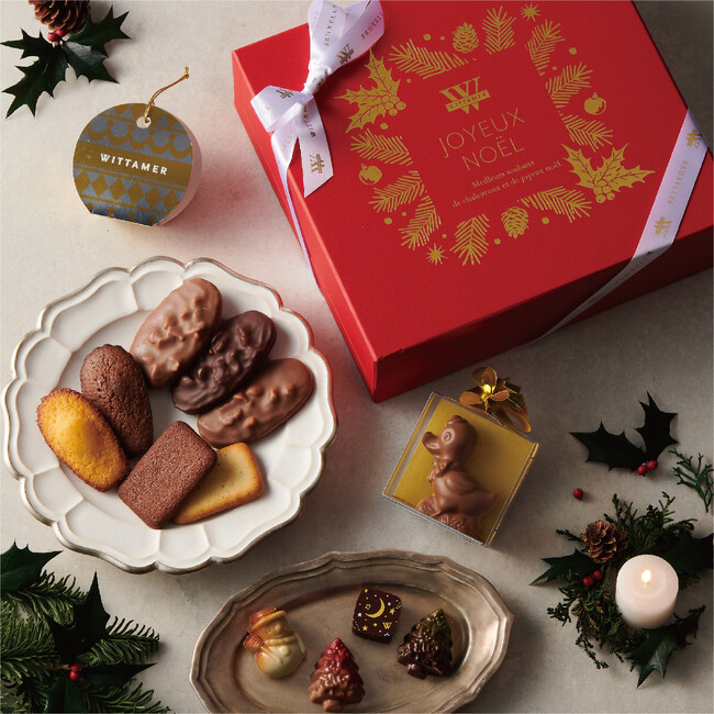 雪だるまやツリーの形のクリスマス限定ショコラと「マカダミア・ショコラ」や「ロイヤル・マドレーヌ」など、ヴィタメールを代表するお菓子を詰め合わせた、とっておきのギフト BOX。クリスマスの贈り物にはもちろん、季節のご挨拶にもおすすめです。