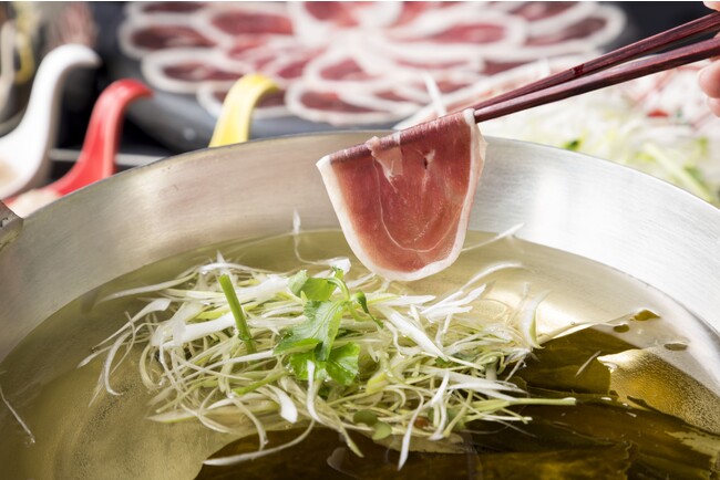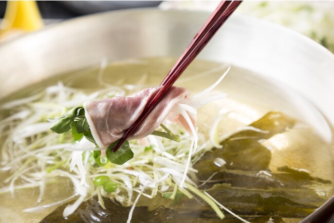 ”7秒間”しゃぶしゃぶすることにより、鴨肉の旨味を最大限に引き出しながらも、 柔らかな食感と歯切れの良さを感じることが出来ます。