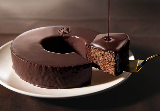 チョコレートの源である“カカオマス”と“ココア”を生地に練りこんで、しっとりと一層一層を繊細に焼き上げたショコラバームクーヘン。その上からさらに、ショコラを一面にとろ~りと流しかけ!ショコラの旨味をショコラで閉じ込めた、デザート仕立ての一品です。
