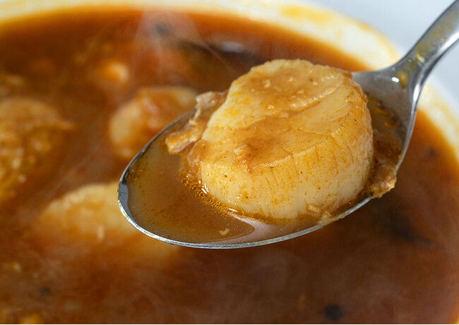 北海道産ホタテがたっぷり入る『魚介で出汁をとったスープカレー』