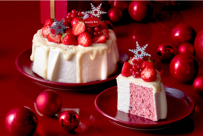 MERCER bisが贈る、クリスマス限定のシフォンケーキ。お手にとっていただいた皆様の心に残る素敵なクリスマスになるよう、特別にアレンジしたクリスマスケーキを2種類ご用意いたしました。今年のクリスマスは是非、MERCER bisのシフォンケーキと共に思い出に残る華やかで特別なひとときをお過ごしください。