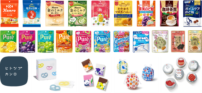 当社は1912年の創業以来、社名になっている「カンロ飴」を始め、菓子食品業界で初ののど飴となる「健康のど飴」、ミルクフレーバーキャンディ市場売上No.1ブランド※1「金のミルク」、大人向けグミの先駆けでありグミの売上トップブランド※2である「ピュレグミ」など、生活者の皆さまから愛される商品を創り続け、成長してまいりました。直営店「ヒトツブカンロ」では、「ヒトからヒトへ つながる ヒトツブ」をコンセプトにキャンディの魅力を発信しております。