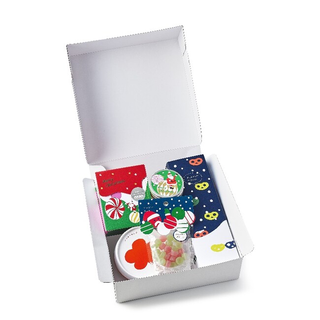 「グミッツェルプチの雪遊び」、「ピュレショコラティエクリスマス」、「ウインターホリデーの小さな缶 サンタ」、「小さなおくりもの クリスマスアソート」(※本セット限定商品)の4つのクリスマス限定商品に加え、カンロの定番商品「カンロ飴」と「塩カンロ飴」を花咲くパッケージにアソートした「ハナサクカンロパンジー」をセットにしてお届け。 大切な人への贈り物やクリスマス用のギフトとしてお使いください。