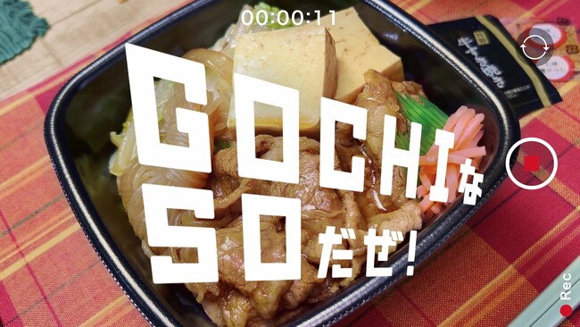 友人同士の賑やかな食事シーンの中で『牛すき重』の魅力を訴求しています。白菜、豆腐、牛肉をお箸で持ち上げて見せることで、具材のバラエティ感と美味しさ演出し、「GOCHIなSOだぜ!」というフレーズで、「すき焼き」のごちそう感と食事の楽しさを演出しています。こちらのCMは実際にスマホで撮影した映像をそのまま使用することで、リアルな表現にこだわりました。